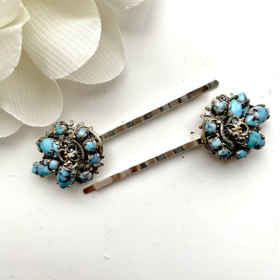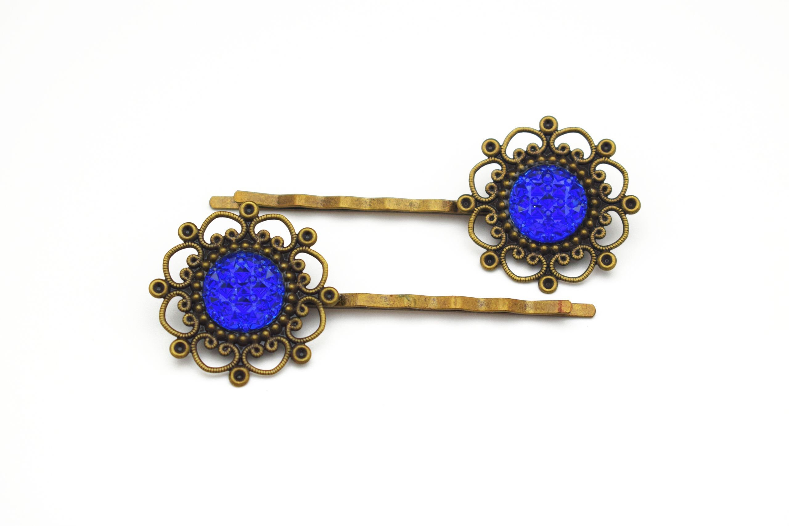 1930s Blue Hair Clips Blue Vintage Bobby Pins 1930s Jewelled Etsy Uk