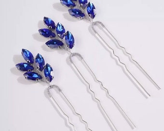 Blue Navy Sapphire Turquoise Sparkly Rhinestone Hair Pins Bridal De Vine