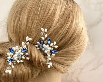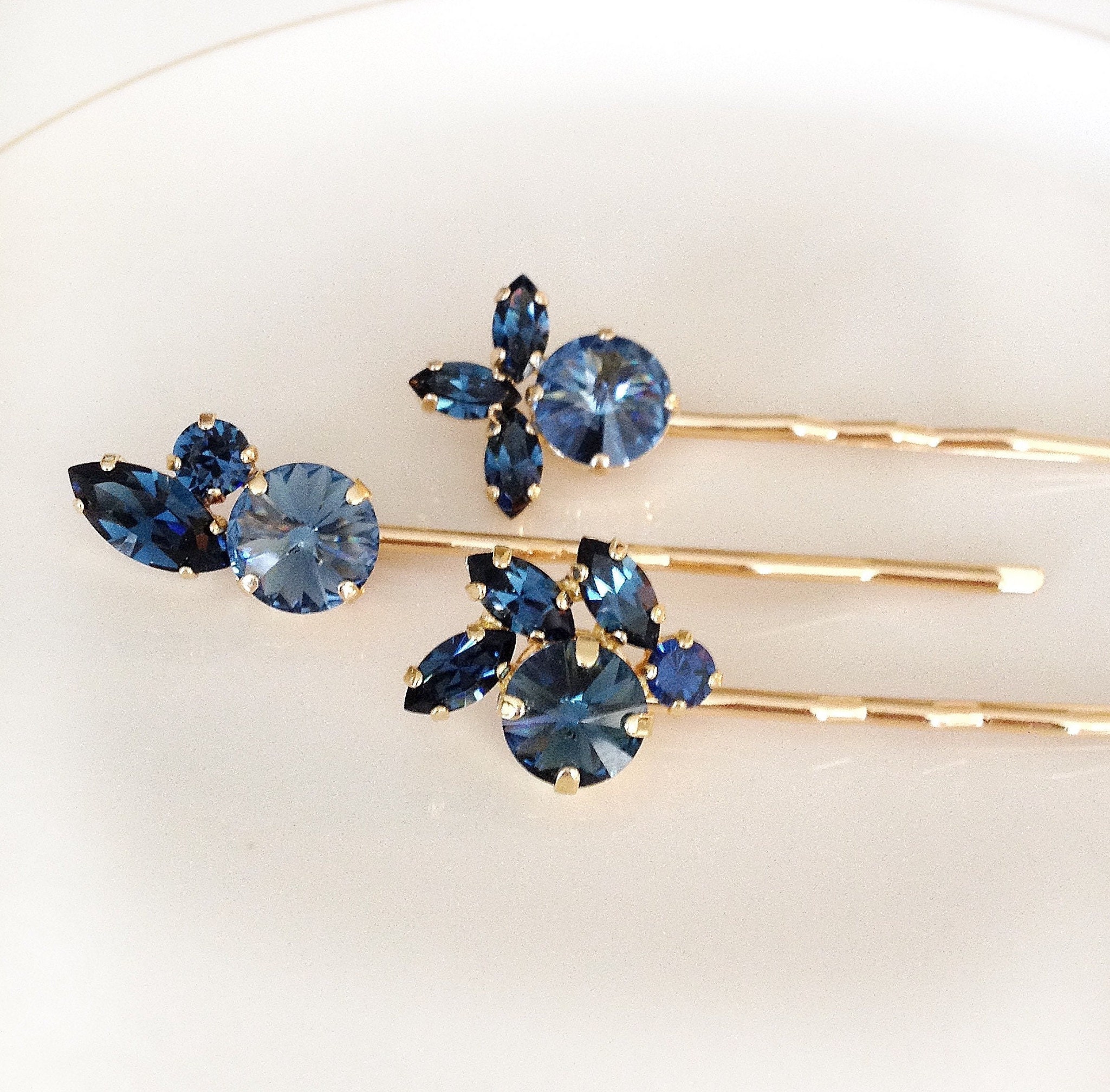 Something Blue Navy Blue Crystal Hair Pins Bridal Hair Etsy Uk