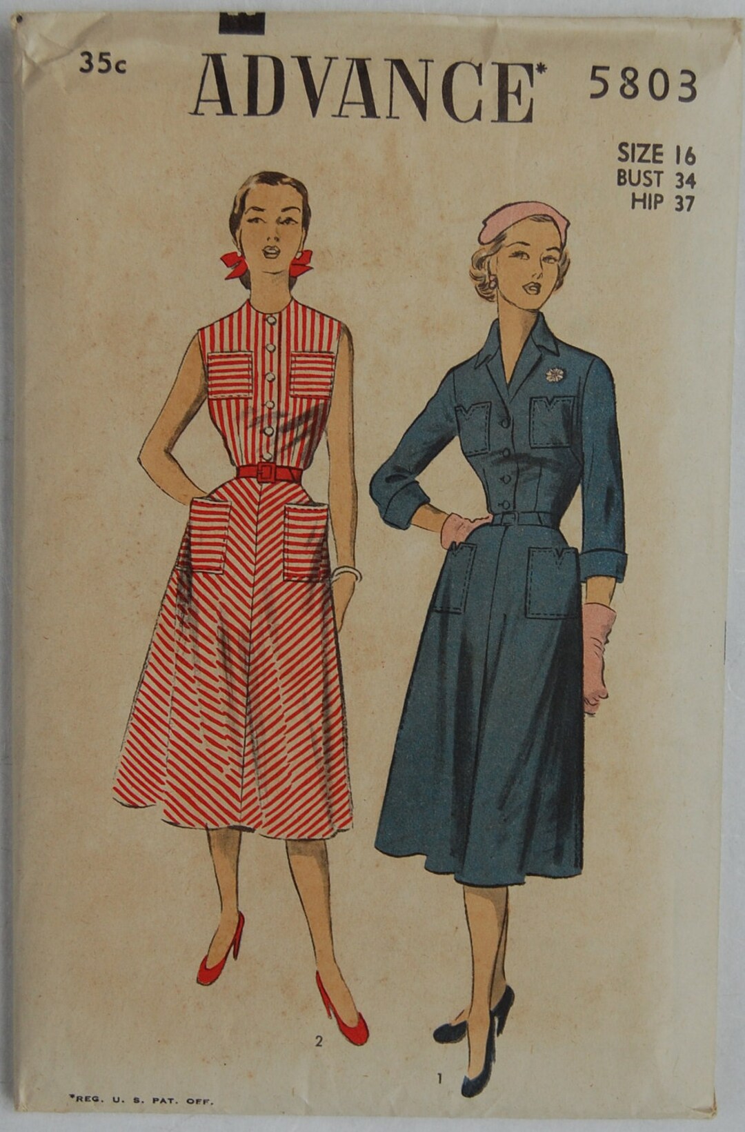 1950s Vintage Original Advance 5803 Sewing Pattern For Dress Etsy